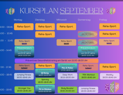 30 06 '25 Kursplan September/Oktober 2025 Gesundheitspark CategoryAktuelles 0 Comments 24 02 '25 Wir suchen Dich! Stellenangebot (m/w/d) Gesundheitspark CategoryAktuelles 0 Comments